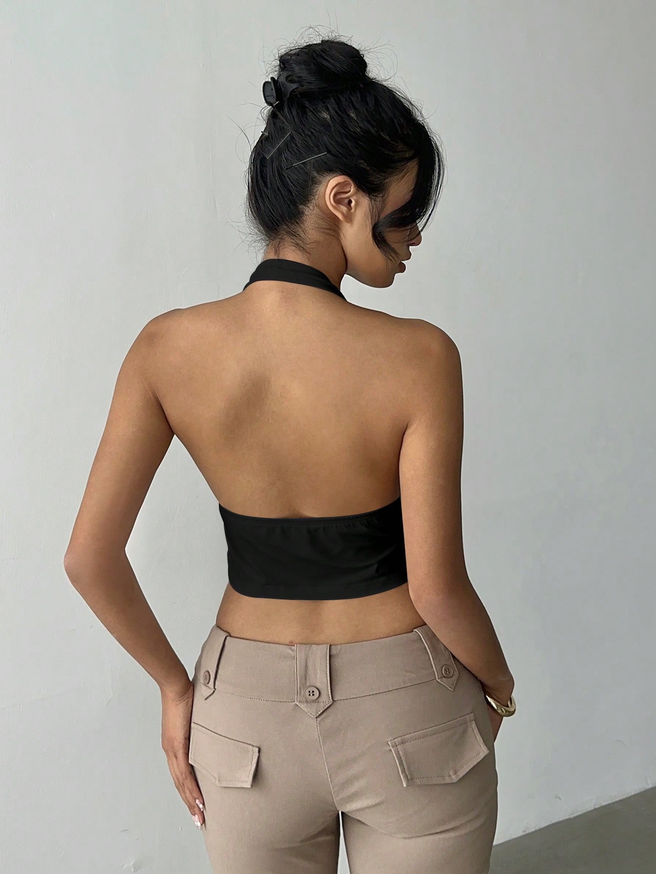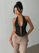 Zyxie Women's Solid Color Slit Hem Front Tie Halter Sexy Tank Top